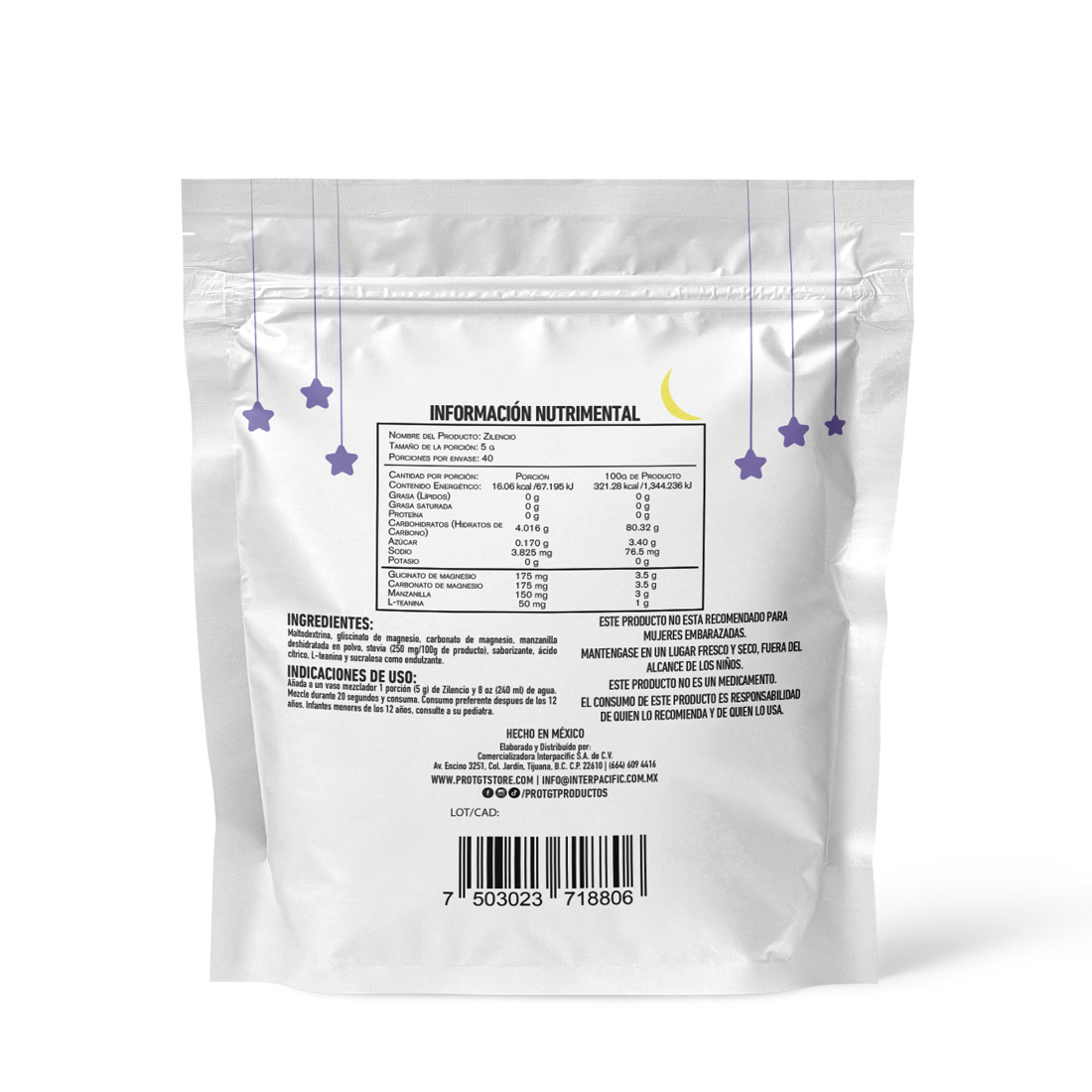 Añada una porción (5 g) de Zilencio en 240 ml de agua. Mezcle durante 20 segundos y consuma.